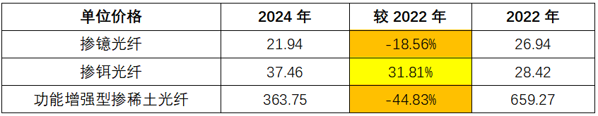 2.销售端:核心产品销售价格持续承压,掺铒光纤截然相反价格走势的合理性待考