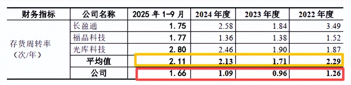 此外,发行人远低于可比公司的存货周转率水平也与其极为优异的毛利率水平难以较好地逻辑自洽。众所周知,一类产品的高毛利率水平往往代表着高附加值与高技术壁垒,在供给端相对稀缺的情况下,其销售也理应呈现产品供不应求的态势。而就运营指标来看,报告期内发行人的存货周转率不但不高,反倒是持续显著低于可比公司,以2024年为例,其存货周转率仅为1.09次/年,而可比公司的周转率平均值则达2.13次/年,为发行人的近2倍之多。