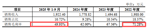 另一方面,从多维度分析,发行人极为优异毛利率水平于未来的可持续性同样令人担忧。其理由之一为,最近一期2025年1-9月,发行人主营业务毛利率已出现明显下滑至62.50%,较2024年减少达6.63个百分点。对此,发行人表示其主要因产品结构阶段性变动以及工艺要求进一步提升,进而导致掺稀土光纤毛利率下降。以公司2024年度主营业务毛利率为基准测算,若其主营业务毛利率分别减少10个百分点,发行人的利润总额就将相应下滑达22.59%。