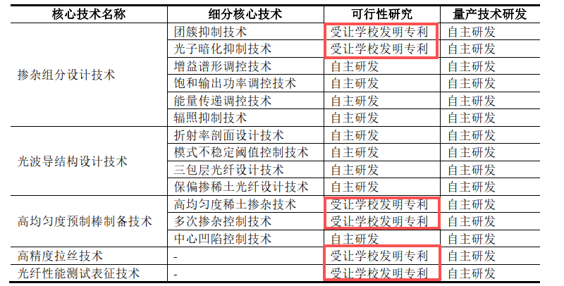 而说到技术储备情况,还不得不提的是发行人存在多项专利技术受让于华中科技大学的情况。审核问询函回复显示,在发行人的核心技术中有高达6项来源于受让华中科技大学发明专利,其涵盖特种光纤的设计原理、基本生产工艺与测试方法等多个方面。同时,由于发行人的实际控制人此前还在华中科技大学任教,其股权也存在长期被代持的情况。而公司表示,虽然受让的发明专利为早期技术形成提供了重要的理论依据与可行性验证,但助力公司产业化的技术均源于自主研发,并以此来解释其产品技术的先进性并非主要依赖外部技术。