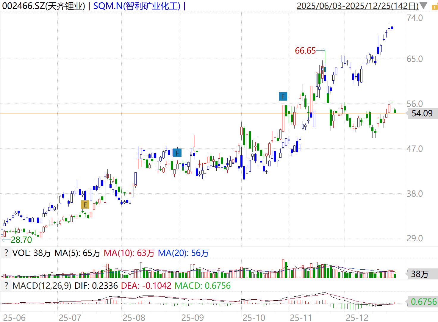 以天齐锂业(002466.SZ、09696.HK)为例,自2025Q2国内独立储能需求爆发以来,碳酸锂进入反转周期,但天齐锂业的股价表现远不如智利矿业化工(SQM.US),尤其是在2025Q4以来,两者间的股价走势出现了明显的背离,持股体验无法令人满意,如下图所示。