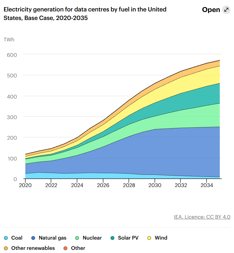 图片说明:美国数据中心发电来源,数据来源于IEA