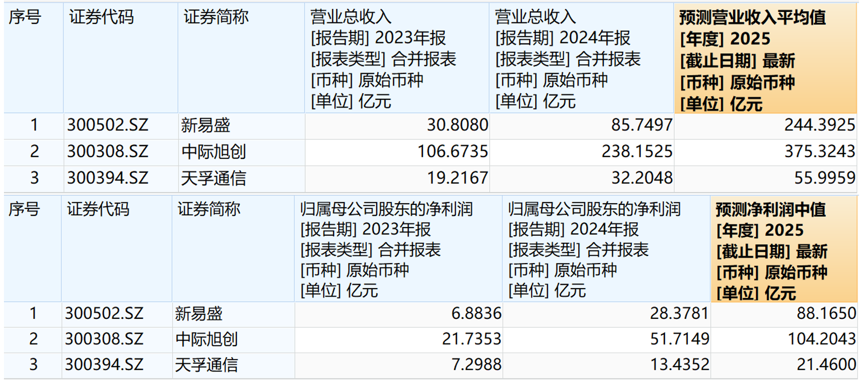 虽然被资本市场称作“易中天”三剑客之一,但过去几年天孚通信的存在感始终弱了一些,无论营业收入还是净利润,跟中际旭创和新易盛相比,在体量上还是差了一大截,在增速上也未表现出足够的特殊性。