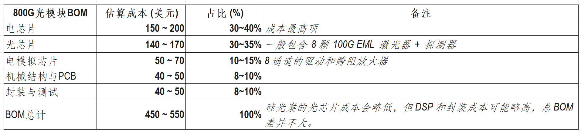 图片说明:800G光模块的BOM成本,数据来源于Yole Group