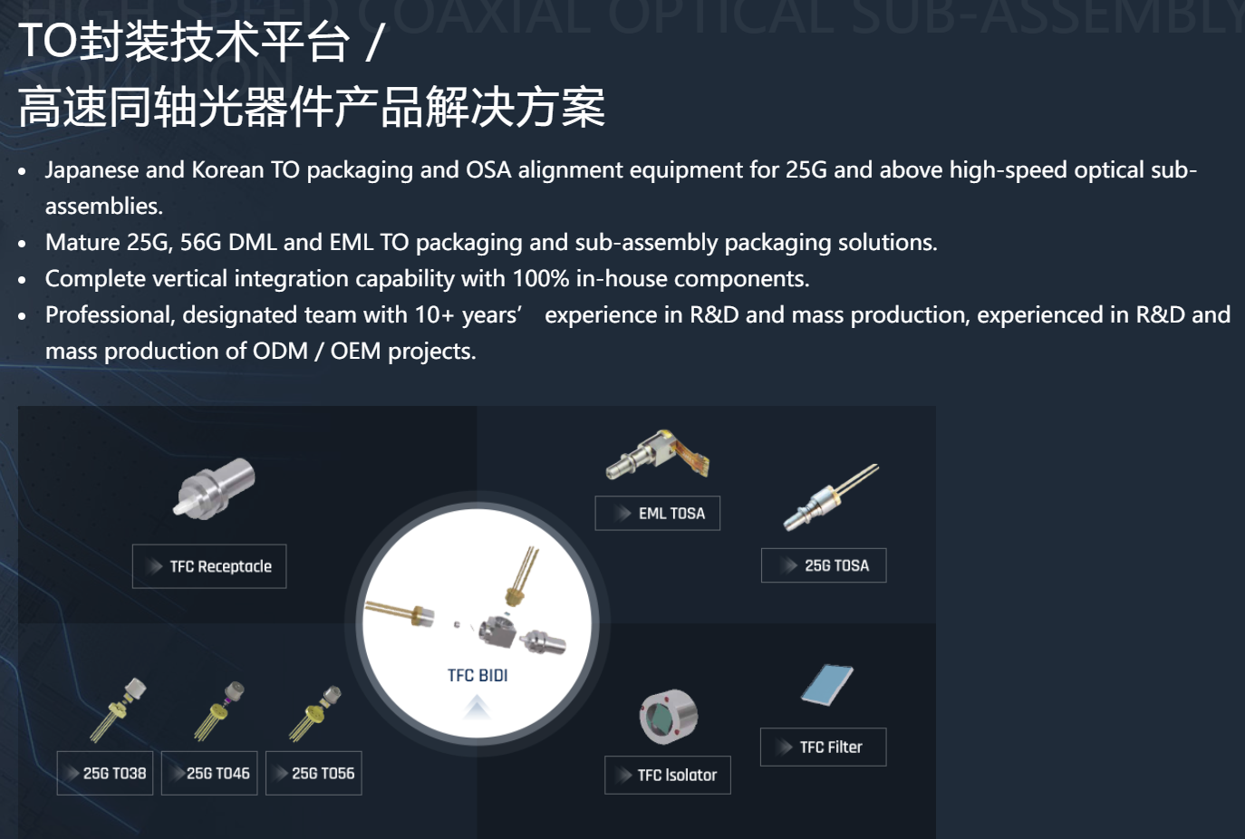 图片说明:天孚通信TO封装技术平台,数据来源于天孚通信官网