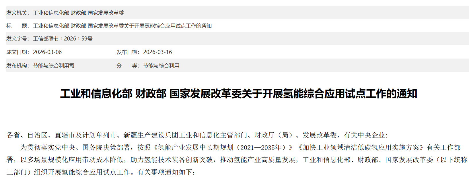 图片说明:关于开展氢能综合应用试点工作的通知,图片来源于工业和信息化部