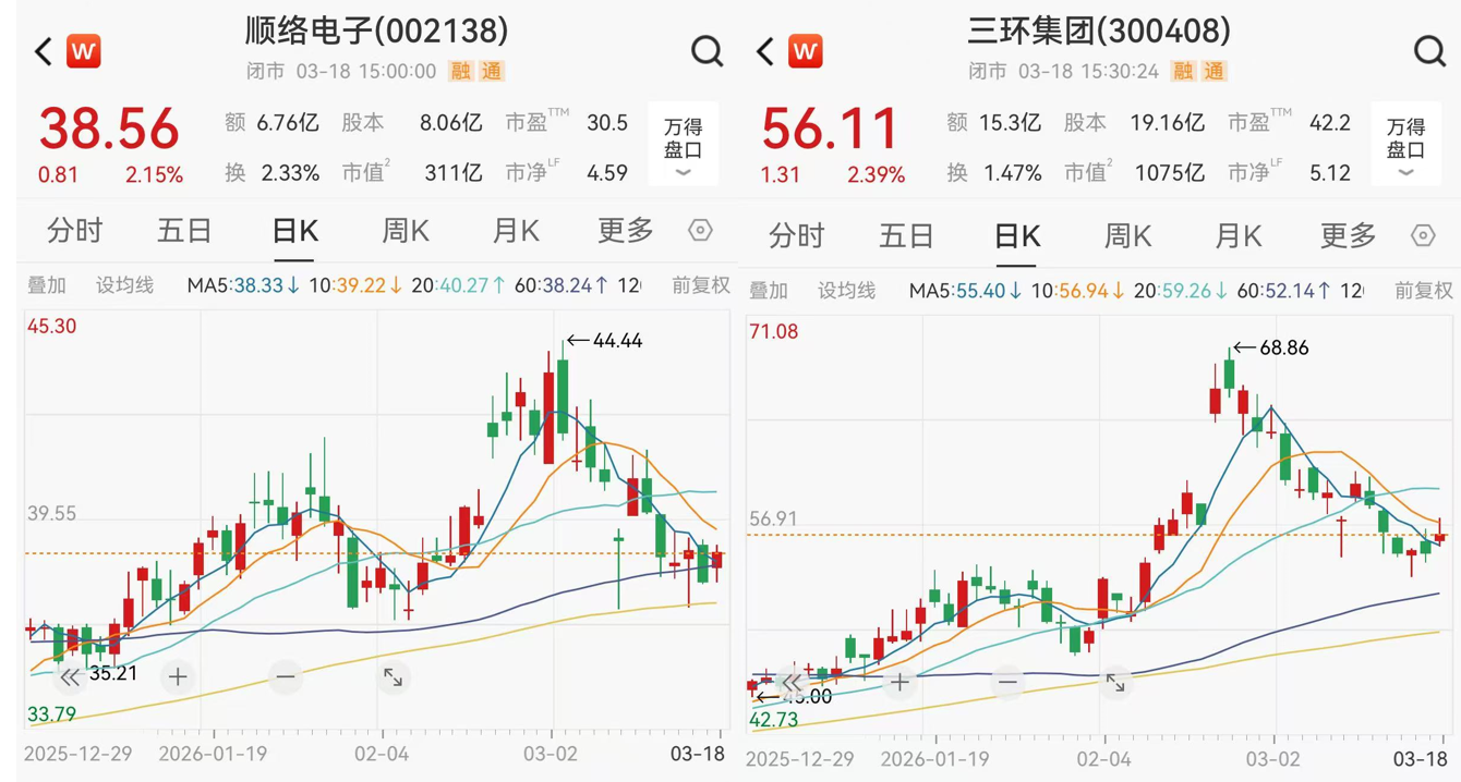 作为被动元件,无论电感还是电容,都类似于电子行业中的大宗商品,两者在春节前后都坐了一波“过山车”,包括但不限于电感龙头顺络电子(002138.SZ)、电容龙头三环集团(300408.SZ)等等。