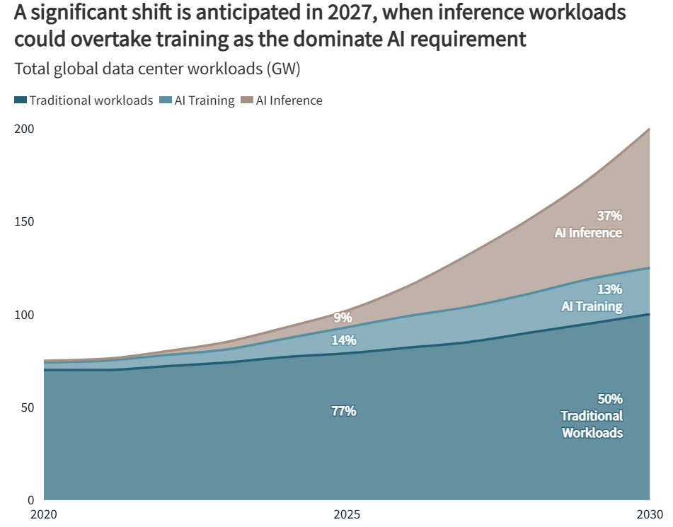 图片说明:推理算力的需求将在几年内超过训练算力,数据来源于JLL Research