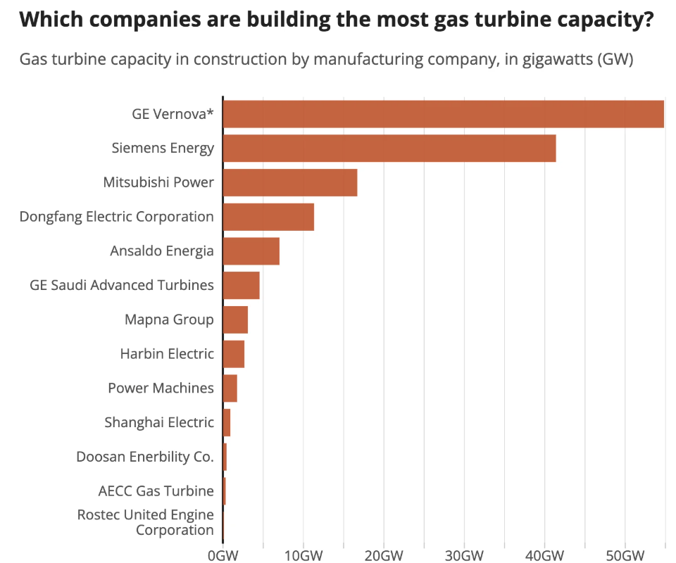 图片说明:2024年前8个月燃气轮机整机出货量排名,数据来源于Global Energy Monitor