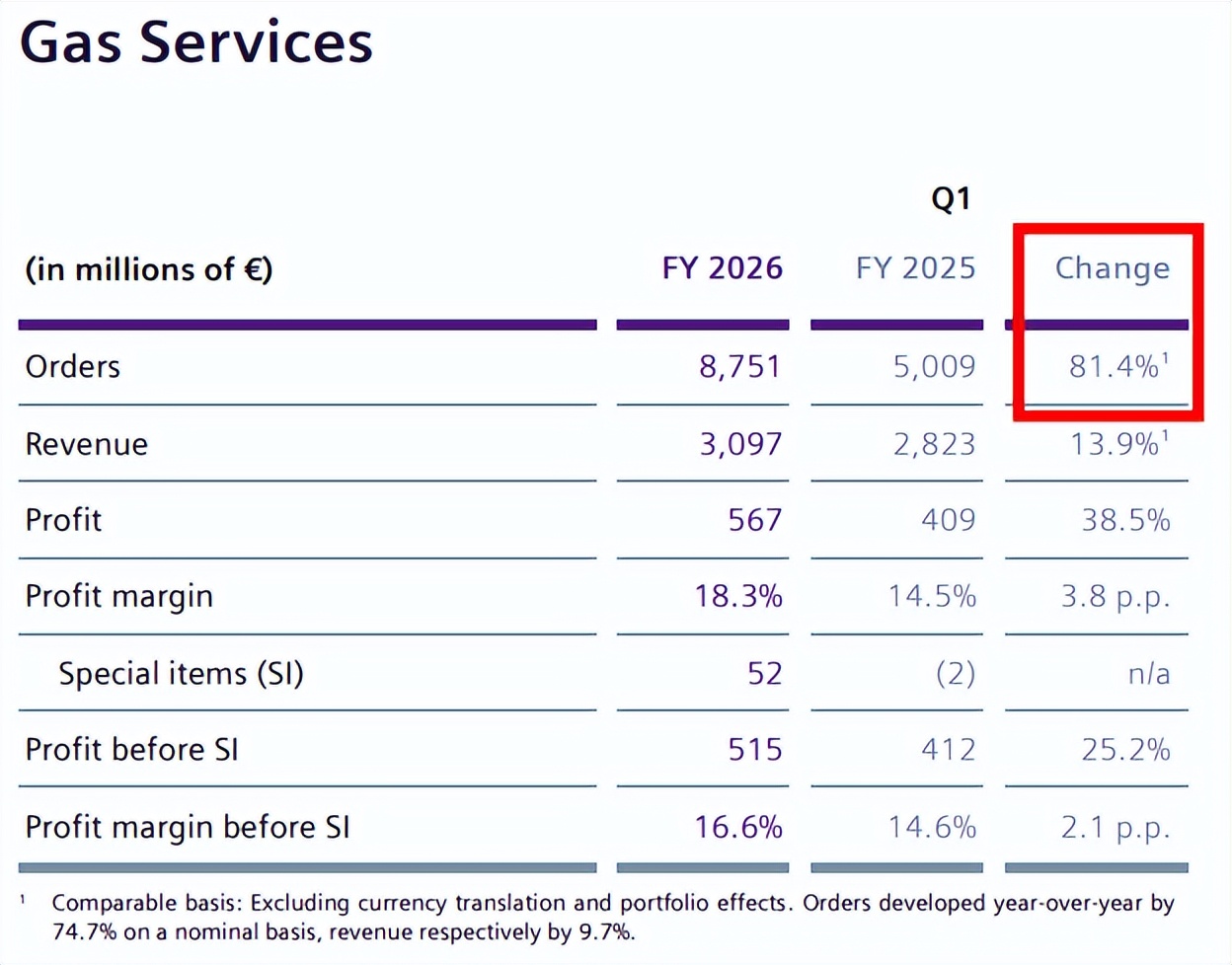 图片说明:西门子能源燃气业务在FY2026Q1加速增长,数据来源于西门子能源FY2025Q1财报