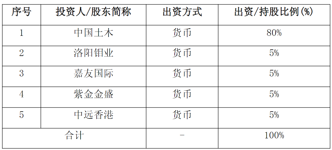 这笔总投资12.43亿美元的战略布局,由中国铁建(601186.SH)旗下中国土木以80%股权主导,洛阳钼业(603993.SH)、嘉友国际、紫金矿业(601899.SH)子公司紫金金盛、中远海运子公司中远香港各持5%。