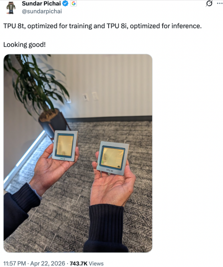 图片说明:谷歌TPU 8t与TPU 8i,数据来源于推特