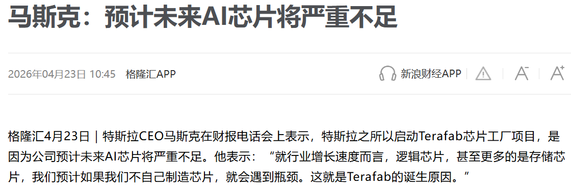 图片说明:特斯拉启动Terafab芯片工厂的原因,数据来源于新浪财经