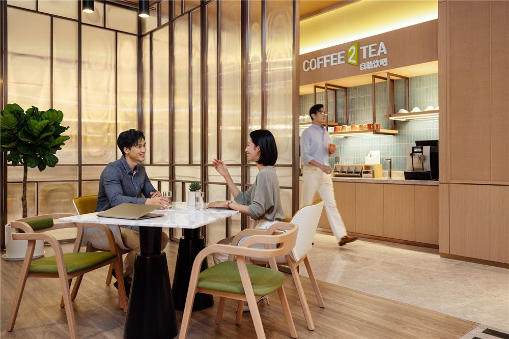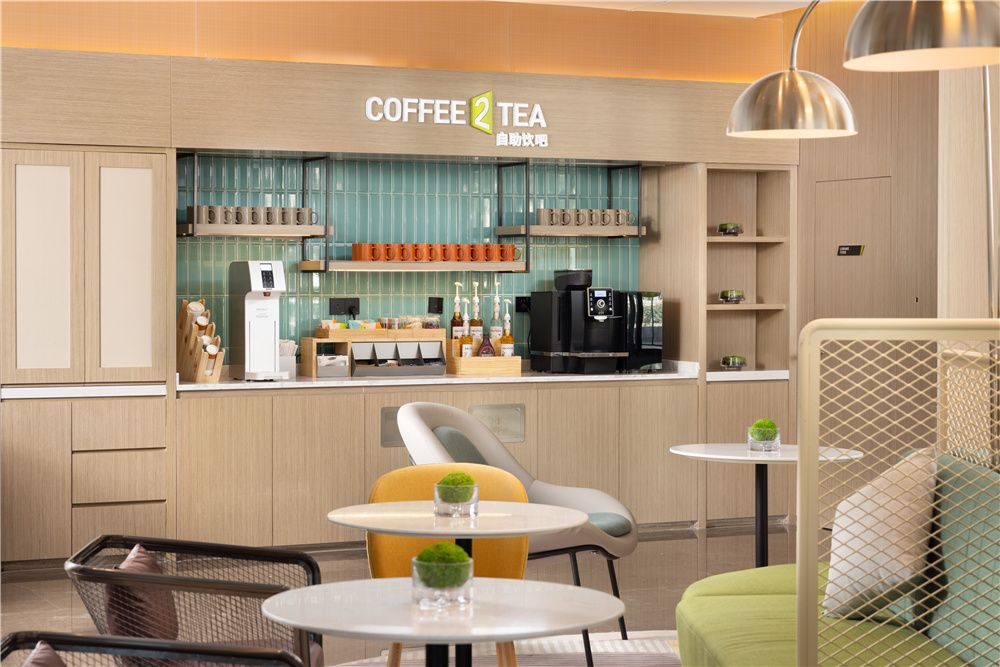 四是,自助饮吧——大堂全天候24小时为客人提供咖啡与茶饮,让大家可以像在家一样舒适自在,实现咖啡无忧;