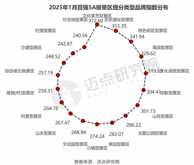 以下是迈点研究院独家发布“2025年1月5A级景区品牌传播力(MBI)100强榜单”。1月,故宫博物院、颐和园、大同市云冈石窟、晋中市平遥古城景区、北京八达岭-慕田峪长城旅游区、拉萨布达拉宫景区、陕西西安大雁塔·大唐芙蓉园景区、南充市阆中古城旅游区、江西省南昌市滕王阁旅游区、乐山市峨眉山景区跻身榜单前十。作为首个“人类非遗版”春节,人文景观类、非遗文化类景区品牌传播力和影响力显著提升,本月TOP10景区中有9家均为人文景观类景区。