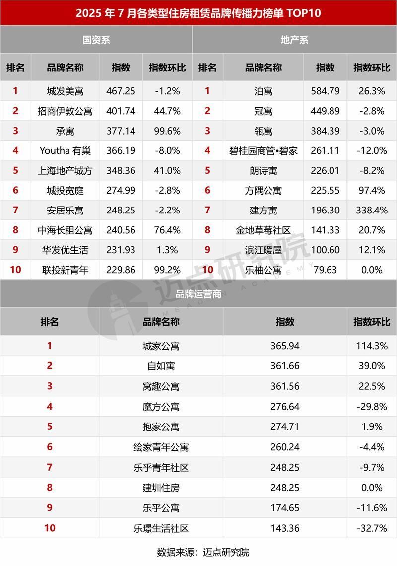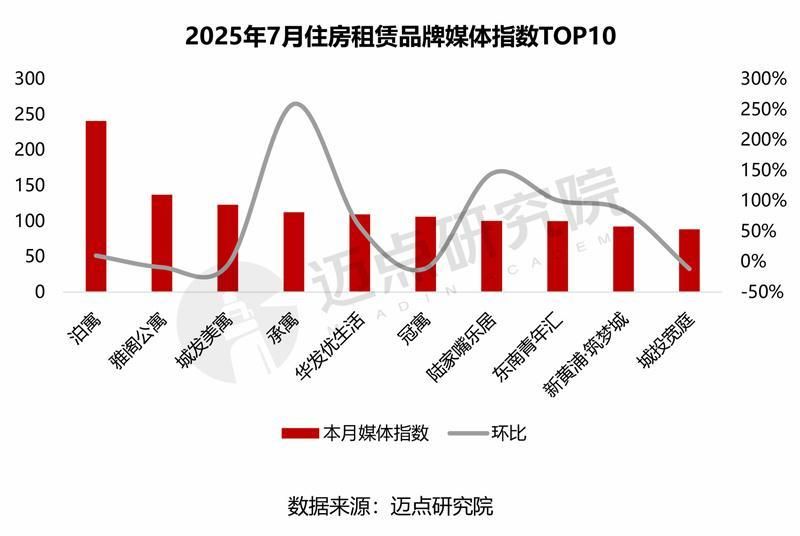 7月,品牌媒体指数前十依次为:泊寓、雅阁公寓、城发美寓、承寓、华发优生活、冠寓、陆家嘴乐居、东南青年汇、新黄浦·筑梦城、城投宽庭。