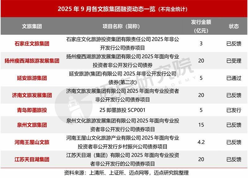 9月,以石家庄文旅、瘦西湖旅发、延安旅游、济南文旅等文旅集团为代表,各集团加快融资发债步伐,用以补充发展资金,资本运作能力得以提升。从融资工具看,整体以私募为主导,具有发行成本低、准入门槛相对宽松、募集方式灵活等优点。