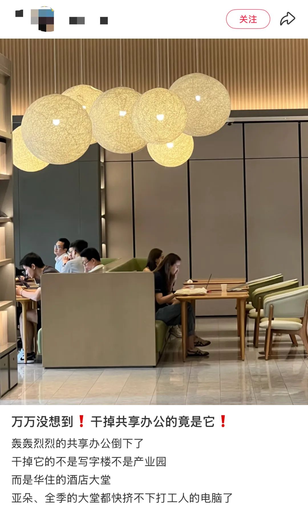但酒店大堂不一样,零租金就能办公。