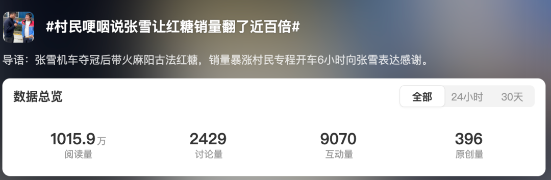 #张雪带火的红糖卖爆了##张雪带火的红糖3天卖了2万多单##村民哽咽说张雪让红糖销量翻了近百倍#等话题刷屏全网,无数人第一次知道,中国还有这样一座热血又温柔的小城。