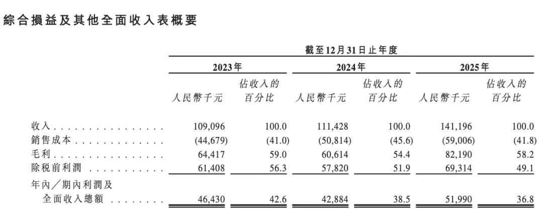 ○收入:约1.091亿元、1.114亿元、1.412亿元,2023至2025年复合年增长率约13.8%;