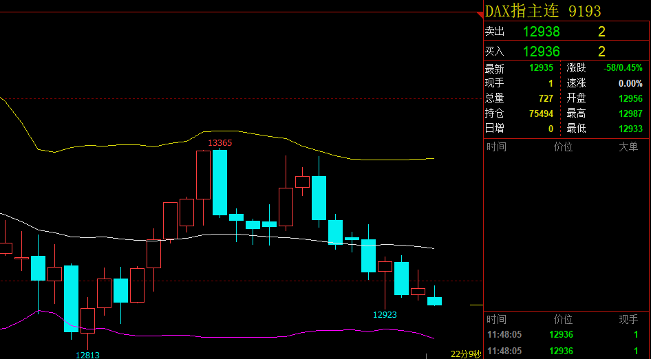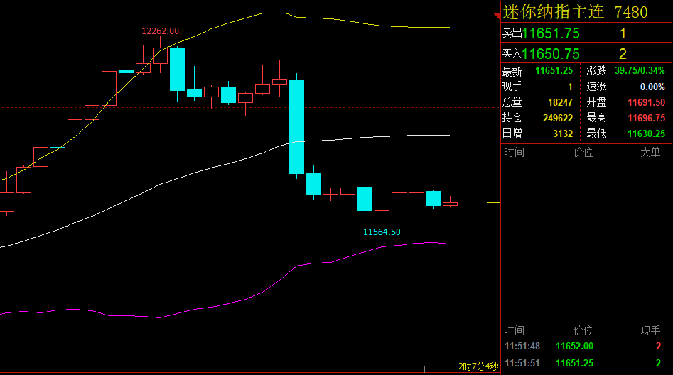纳指09合约昨日给出11830空单,最高反弹11750附近,没有太大行情,目前也处于横盘阶段,我们今日依旧等待反弹高位做空为主。