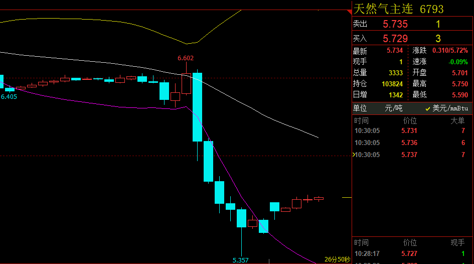 天然气08合约给出空单之后单边下跌,目前再次下探5.000下方,大趋势顺势为主,看空即可。