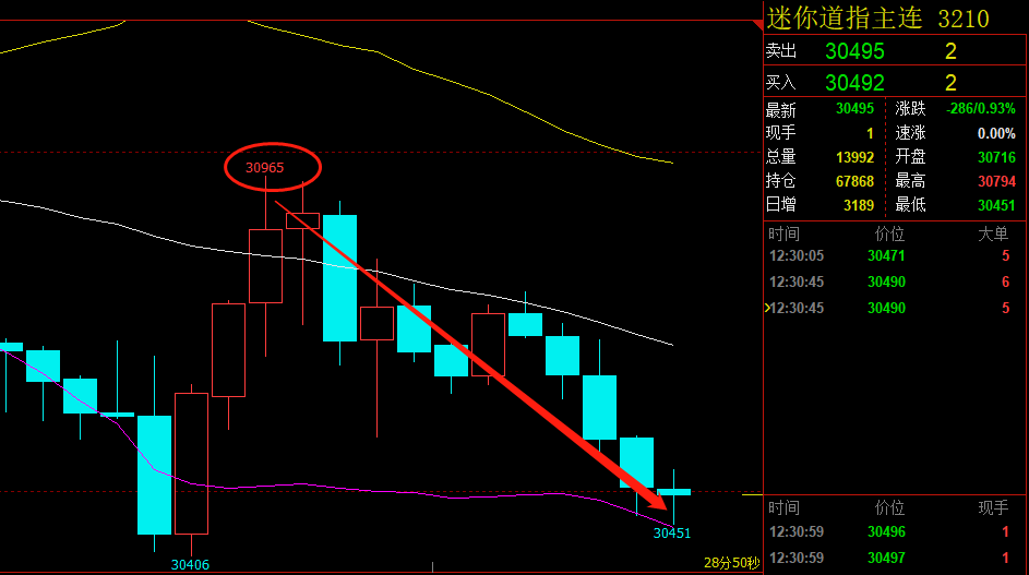 道指09合约昨日美盘给出30960做空,最高反弹30965位置,给出我们空单进场机会,今日来看顺势看空为主,保持空单观点不变。