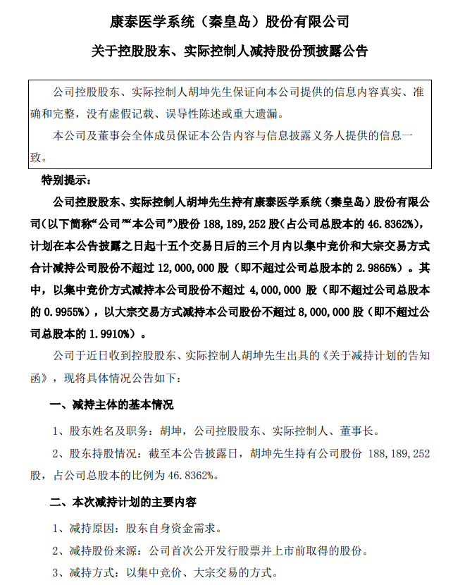 按照公告当日收盘价13.97元每股计算,胡坤拟减持的市值高达1.68亿元!