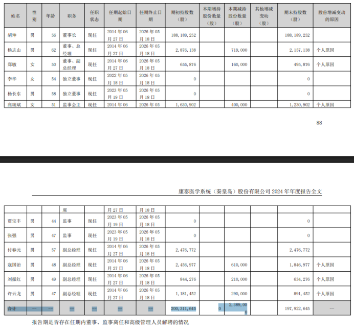 据泰康医学的年报数据显示,在2024年内董监高们累计减持了上市公司238.9万股。