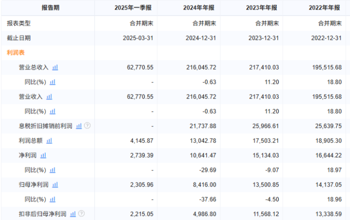 至于净利润率更是下滑了,2021年至2024年,净利润率分别为8.5%、8.51%、6.96%、4.93%,今年一季度继续下探至4.36%。
