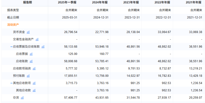 年报数据显示,2021年至2024年,联环药业的应收账款及应收票据规模不断走高,分别为3.86亿、4.89亿、4.89亿、5.39亿,到了今年一季度,继续增至5.81亿;
