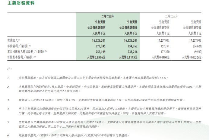 而从年度业绩来看,2024年中粮家佳康营收163.26亿元,同比减少5.29%,不过受益于猪价上涨,公司归母净利润(公允价值调整后,下同)5.382亿元,较2023年亏损960万元一举扭亏为盈。