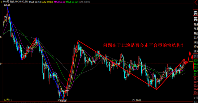 回归正题,从我们前期的数浪来看,行情一直处于4小时的数浪震荡中,也就是我们在2512号合约中就当前走势数浪3-2浪,因为在2512号合约中行情跌破56美元之后再上涨的终点是破了我们在前期2512号合约数浪的3-2浪的终点了,所以当时我们就把目前的这波上涨数浪从3-2浪了,但是在11月原油更换为2601号合约之后此3-4浪的终点是没有破3-2浪的终点的(在波浪理论中3-4浪的终点是不能进入3-2浪的起点的,但是这是一百年之前的理论,现在的行情走势我们要灵活一点运用,所以我们就把当前的数浪继续看着是3-4浪了,如果当前的行情继续上涨破了62.59美元和3-2浪的终点了,那么我们就只能把当前的走势继续看着是3-2浪了,然后当前行情已经断断续续涨了一个星期了,按照老李之前说的规律,行情在没有数据和消息面以及地缘局势影响的情况,单纯走技术面的会涨几跌几的,所以我们今日就继续用小的止损去做空博弈一个日内1.5美金左右的利润。