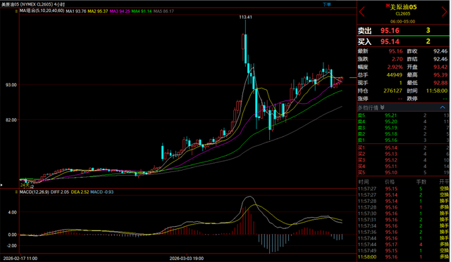 由于美原油更换主力合约,由2604号更换为目前的2605号主力合约了,所以今日所给的参考点位均为2605号主力合约点位,今日的文章我们依旧不以数浪为主了,因为目前行情受伊朗地缘局势和霍尔木兹海峡的影响较大,不能以技术面为主了,得以消息面和地缘局势影响为主了,技术面行情走势它是一个循序渐进的走势且有规律的,而像最近这样的地缘局势影响的行情,它是无规律且大涨大跌的,每天的波动至少都在5美元-10美金之间,而技术面的走势行情每天的最大也就是3美金之内,所以我们今日只给多空进场一个大概参考点位,大家可以在老李给的参考点位上下10个点之内进行优化,比如老李建议在99美元做空,大家可以在99.05美元99.10美元和98.95美元和98.90美元附近作为进场参考点位,目前只要伊朗局势持续升温,原油就会继续上涨,一旦有所缓解,原油跌得比前面上涨的速度估计还要快,所以在交易的时候要多关注伊朗的局势变化。