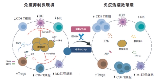 ES014是全球首创、也是全球首个进入临床阶段的CD39/TGF-β双特异性抗体,创新性地实现了对肿瘤微环境中CD39-腺苷通路和TGF-β通路两大关键免疫抑制通路的同步阻断,破解了行业内靶向TGF-β抗肿瘤药物的研发难题,为实体瘤治疗提供了全新的作用机制。已完成的I期临床研究结果显示,ES014在非小细胞肺癌、胃肠间质瘤和硬纤维瘤等多种难治性实体瘤中,展现出积极的单药抗肿瘤活性与良好的安全性,其中硬纤维瘤患者客观缓解率(ORR)达40%,疾病控制率(DCR)更是达到100%,具备广泛的临床应用潜力。此前,该产品已获得美国FDA授予的孤儿药资格认定用于硬纤维瘤治疗,此次入选AACR年会壁报展示,更是国际学术界对ES014创新机制与临床价值的关注与权威认可。