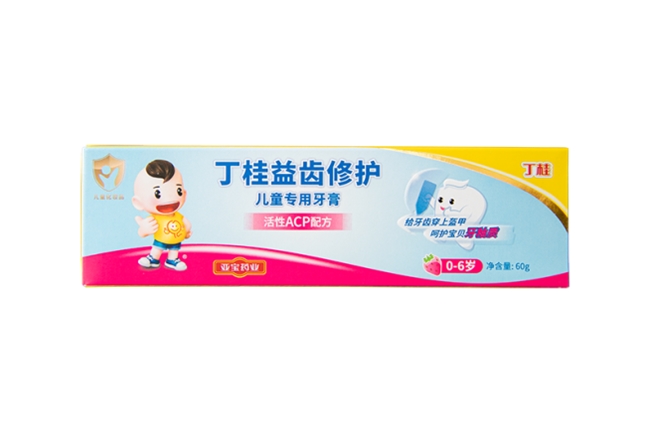 丁桂儿童牙膏——丁桂益齿修护牙膏,具有再矿化修复牙釉质,坚固牙齿,预防蛀牙,美白牙齿的作用。含有:活性ACP-骨水泥,坚固牙齿促矿化,从根本上解决、预防蛀牙问题。安全0添加(氟化物、防腐剂、色素、SLS)。运用活性ACP-骨水泥等创新成分,专注儿童牙齿的再矿化与日常护理,坚持安全无添加。