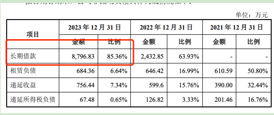 然而,利安科技虽然在银行有着1.21亿元现金存款,但这笔资金并不能直接帮助到公司IPO项目,因为在1.24亿元的货币资金背后,利安科技目前已经背负着巨大财务压力。财报显示,截止到2023年末,利安科技的短期借款金额为559.43万元,长期借款金额为8796.83万元,长期借款和短期借款合计金额达到了9356.26万元。也就是说,利安科技目前1.24亿元的货币资金也仅可以支撑公司的长短期借款。