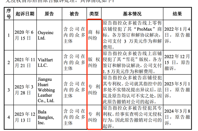 除税务问题外,千岸科技还面临着严峻的知识产权风险,报告期内曾作为被告在美国陷入4起知识产权侵权纠纷,涉及商标、版权、专利等多个领域,虽最终均以原告撤诉结案,但依然暴露出公司产品研发、知识产权布局的短板。