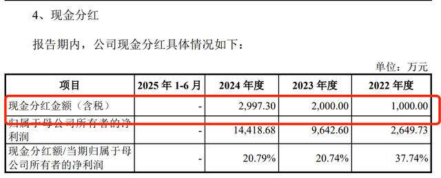 更令市场不满的是,千岸科技在申报IPO前,连续实施大额现金分红,实控人姐弟二人成为最大受益者。报告期内,公司累计现金分红5997.30万元,其中2022年分红1000万元,2023年上半年分红2000万元,2024年分红2997.30万元,占当年净利润的20.79%。