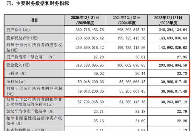 招股书数据显示,报告期内(2023-2025年),新睿电子营业收入分别为2.04亿元、3.01亿元、3.18亿元,同比增速分别为47.44%、5.92%;归母净利润分别为3268.53万元、5832.17万元、5904.82万元,同比增速分别为78.47%、6.85%。