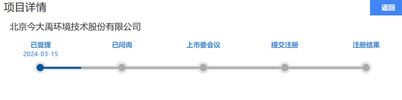 2024年3月15日,北交所公告显示,北京今大禹环境技术股份有限公司(以下简称今大禹)IPO申请获受理。