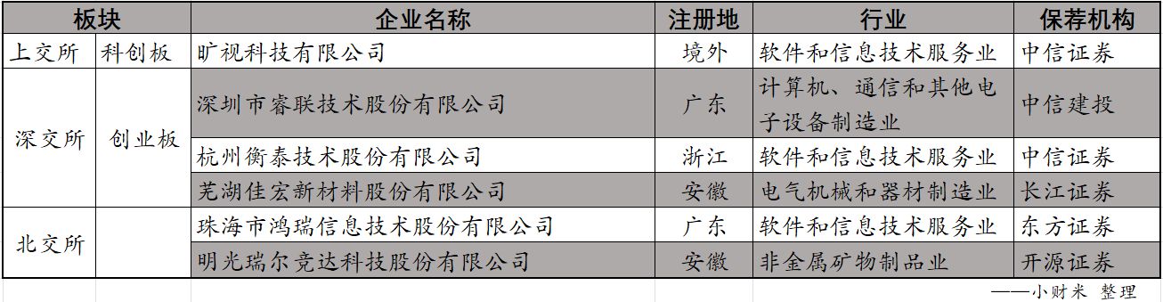 上周(2024年11月25日至12月01日)根据上海证券交易所、深圳证券交易所、北京证券交易所发布的信息显示,共有六家企业撤回IPO首发申请材料。其中,科创板1家,创业板3家,北交所2家。