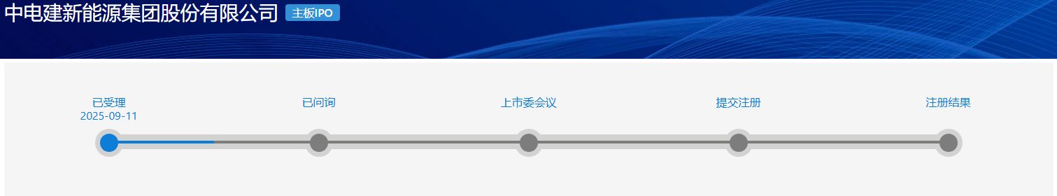 上周(2025年9月8日至9月14日)根据上海证券交易所、深圳证券交易所、北京证券交易所发布的信息显示,共有一家企业IPO申报材料被受理,为沪市主板企业中电建新能源集团股份有限公司。