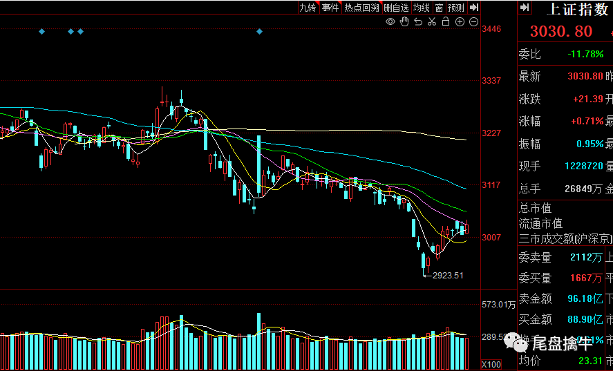 虽然从3000点拉回,但上方还有个跳空缺口的压力,这个缺口需要有放量回补才能继续走高