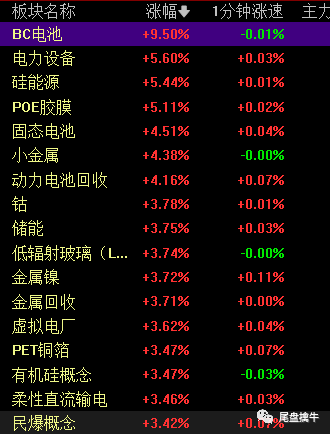 首板涨停时间较早的是闽发铝业,王子新材,赛伍技术,雅博股份这几只