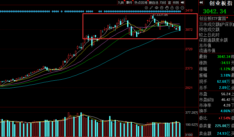 还是创业板跌的多一些,分时高开1.8%左右,日内回落有3%