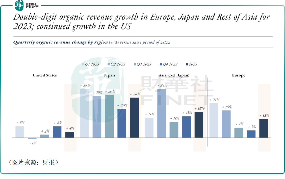 仅从区域来看,2023年,LVMH旗下的奢侈品在日本卖得很好,在其他亚洲区域亦表现不俗。