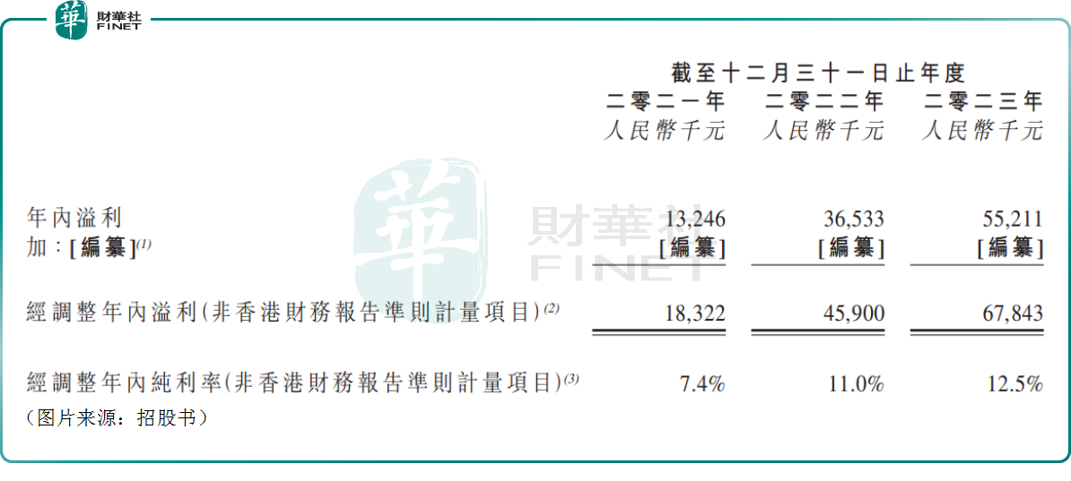 业绩方面,招股书显示,2021年-2023年,瑞昌国际的营收分别为2.48亿元(人民币,下同)、4.19亿元、5.44亿元;实现归母净利润分别约为0.13亿元、0.37亿元、0.55亿元;经调整净利润分别为0.18亿元、0.46亿元、0.68亿元。