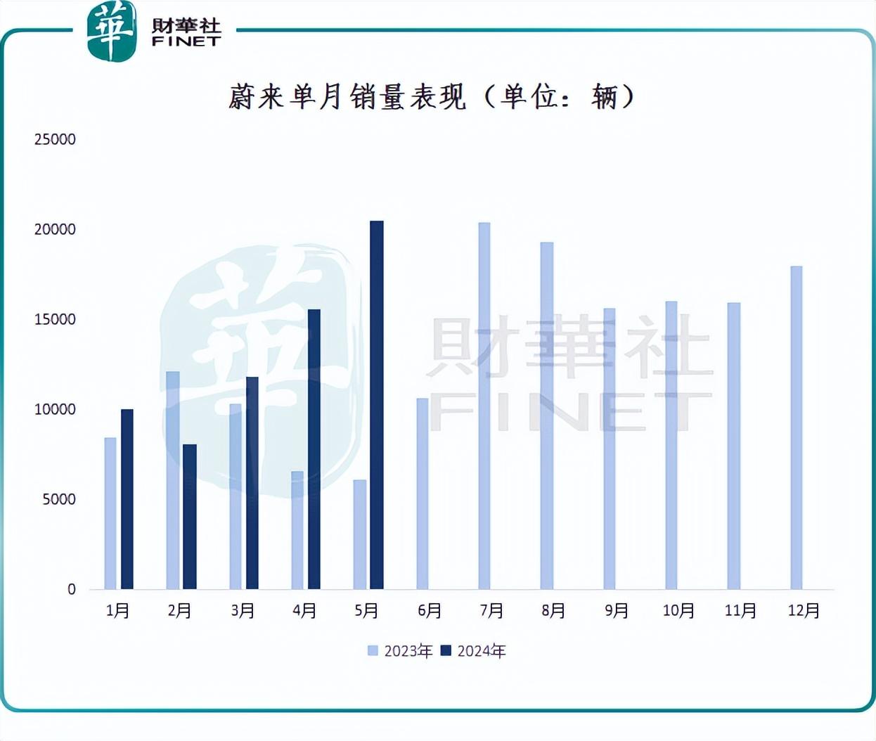 首先,是销量回暖。在刚过去的4、5月,蔚来销量迎来大增,重回了造车新势力第一梯队。具体而言,4月蔚来交付15620辆,同比增长134.6%;5月蔚来交付20544辆,同比增长233.8%,环比增长31.5%,刷新了历史新高。