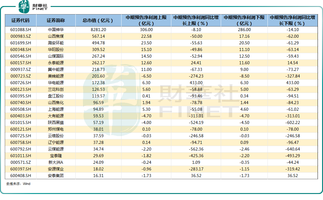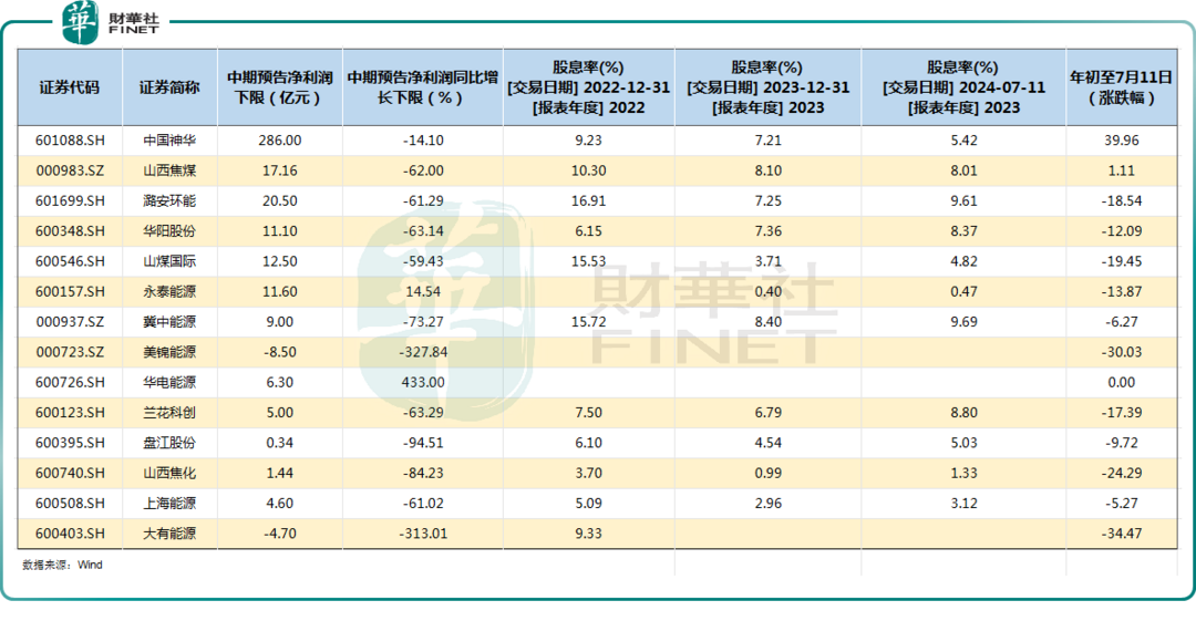 Wind数据显示,截至7月10日,目前已有23家主营煤炭相关业务的A股公司披露了2024年上半年的业绩预告。